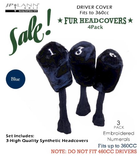 Deluxe Longneck Fur Barrel Head Covers Fits Golf Clubs to 360cc 3 Pack (1, 3, 5) Clutter Proof Design w/ Heavy Knit Long Neck Quality Embroidered Numerals Color: Blue