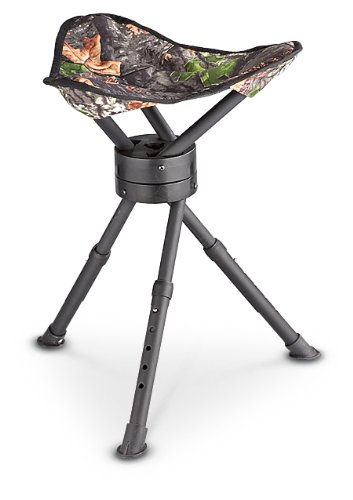 Guide Gear Swivel Stool. Super-sturdy Seat folds small and packs light, yet supports up to a WHOPPING 330 lbs.! Tube-steel tripod legs; Seat height adjusts from 15-17 1/2"; 360 degree swivel; Includes carry case for easy take-along, storage; Camo-print seat surface; Just 4 1/2 lbs.; Order Now! Guide Gear Folding Tripod Swivel Stool