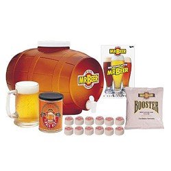 1 of 1 people found the following review helpful By Dallas Guy "QuantumRift" (Sierra Vista, AZ USA) - See all my reviews This review is from: Mr Beer Home Brewing System Deluxe Edition Beer Kit I received my Mr. Beer kit for Christmas and got around to 'brewing' my first batch in January, a few weeks before the Super Bowl. The instructions were easy to follow and in no time I had my first batch of beer ("Canadian High Country") in the fermenting keg and on its way. I waited two weeks before I bottled and followed the instructions and on Super Bowl Sunday, I had 8 Liters of my home brewed beer. It turned out great. I started fermenting my 2nd batch on President's day ("Oktoberfest") and will let it ferment 3 weeks before bottling.I find that the large mouth 'keg' provided by Mr. Beer is much easier to use, and makes my batches in amounts (2.5 gal) that work for me. As I'm the only drinker of beer in the house, 2.5 gallon seems to be the right amount for me to enjoy as the next batch is in process. If you've ever wanted to give it a try, this is the perfect kit to start out with. In no time you'll be fermenting your first batch (2.5 gallons) and bottling it... Read more 1 of 1 people found the following review helpful By Amazon Verified Purchase This review is from: Mr Beer Home Brewing System Deluxe Edition Beer Kit Got the kit earlier than I expected to, that always being a huge plus. It came with everything it was supposed to, however the Booster was hard which made the process a tad harder but not much. Messed up my first batch by not cleaning the parts well enough. On to round two. Amazon Verified Purchase This review is from: Mr Beer Home Brewing System Deluxe Edition Beer Kit I got this as a groomsman's gift and he loved it. Great for people just learning how to make their own beer. |