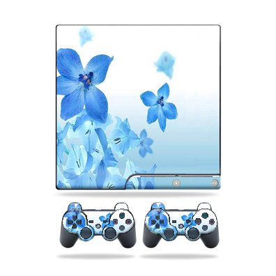 Protective Vinyl Skin Decal Cover for Sony Playstation 3 PS3 Slim Skins + 2 Controller Skins Blue Flowers Reviews