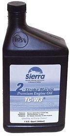 Sierra "Blue" Premium TC - W3 2 - Cycle Oil. Runs cleaner, burns cleaner. There are many reasons to choose Sierra for your outboard engine... here are a few: Minimizes engine wear; Provides rust protection; Resists deposit formations; Provides excellent scuffing protection; Manufactured and designed to meet and exceed all engine manufacturers warranties; Exceeds JASO, ISO, API and NMMA for advanced generation 2-cycle lubricants; Ideal for oil injection systems or pre-mix applications; Optimum burnability for smokeless combustion; Significantly reduced aquatic toxicity to fish compared to other outboard oils on the market; Maximum lubrication and detergency allows engine to run more smoothly and efficiently; Reduces ring sticking, deposit formation and exhaust port blockage... less friction for easier starts; Formulated to improve performance and extend engine life by reducing wear on critical engine components; Ideal for today's high horsepower outboards that demand maximum performance; Excellent performance with lower quality fuels; Exceeds the industry standards established in 1997; Graduated bottle and mixing ratio chart simplify premixing; Formulated for all personal watercraft, power equipment and marine applications where TC-W3 is required. State Size. Order Today! Sierra "Blue" Premium TC-W3 2-Cycle Oil